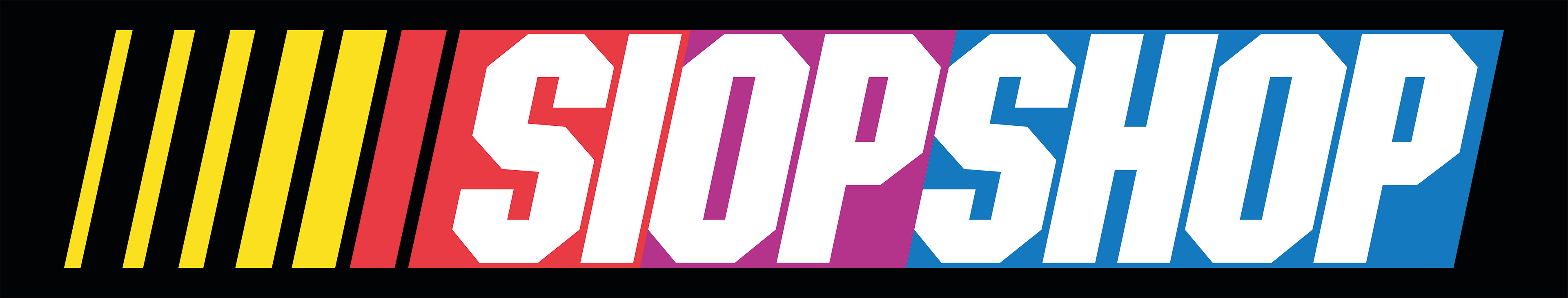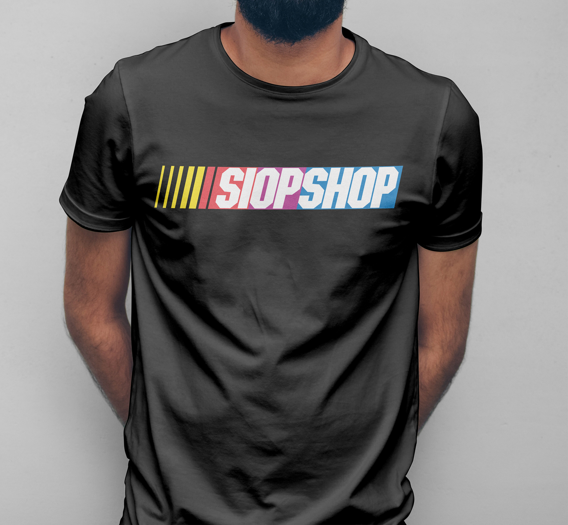 A tshirt mockup design for the SIOP SHOP bakery in Manchester, inspired by their van and the Nascar Logo.